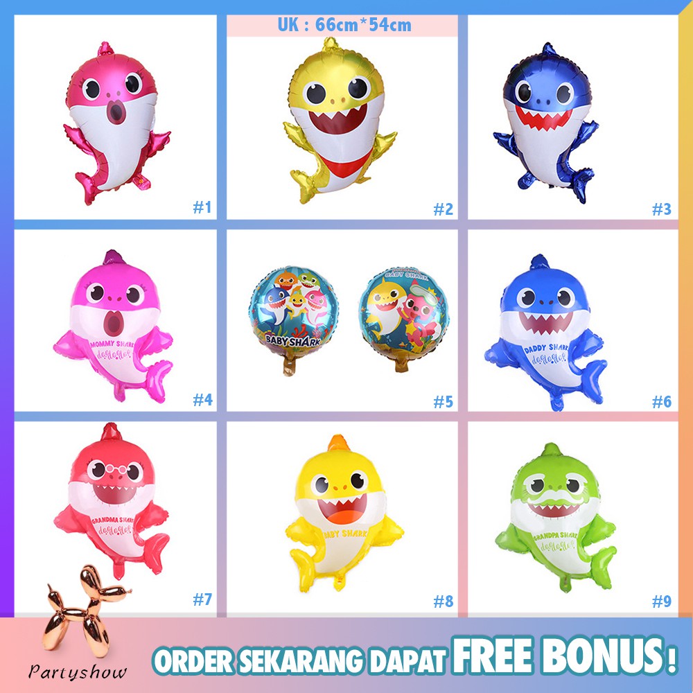 Baby shark Balon Foil dekorasi ulang tahun perlengkapan . Sumber Gambar : shopee.co.id